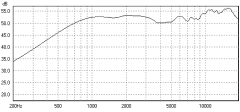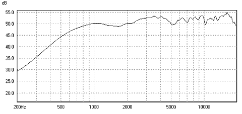 Fig. 6 shows a totally unsmoothed 60° off-axis measurement of the ribbon transducer. At 60° it's still completely flat up into the highest treble! This is nothing short of incredible!