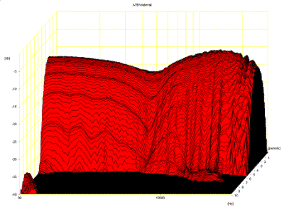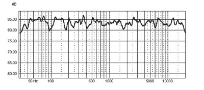 Fig. 5 shows the totally unsmoothed on-axis measurement of the ribbon transducer. The on-axis response shows the psycho acoustic mid treble shape (first discovered by the BBC, optimum 3-4dB dip) which compensates for the directivity of the ear. Above 10KHz you basically see the (non-linear) response of the microphone. This means that the ribbon is within 1 dB of the on-axis target response.