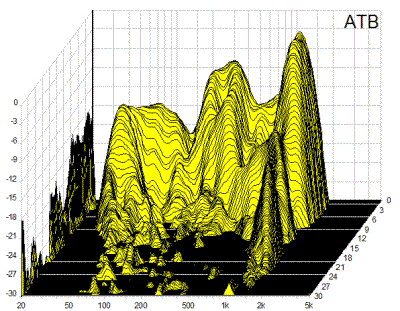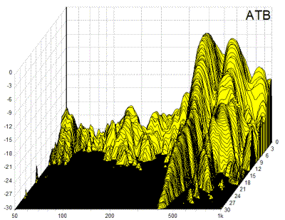 Fig. 1 above shows a 3D-cos-burst analysis of a 40 litre closed speaker enclosure featuring 1” MDF walls with 4mm bitumen damping pads.